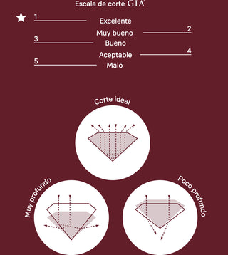 Los tres factores principales que determinan la calidad y el grado de brillo son precisión, simetría y pulido; evitan que la luz se escape de las facetas del diamante, la luz rebota como se observa en el *corte ideal* y es cuando destella intensamente.