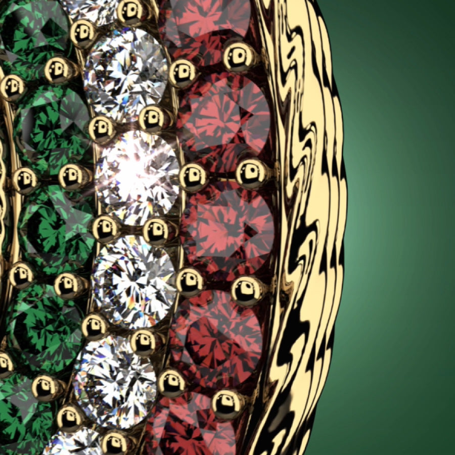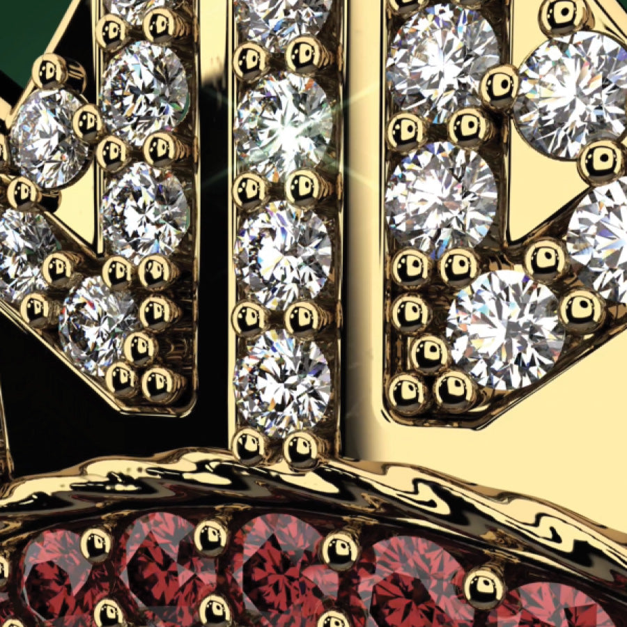 Creada con zafiro, esmeralda, rubí y diamante, cada gema representa sabiduría, esperanza, pasión y fortaleza.